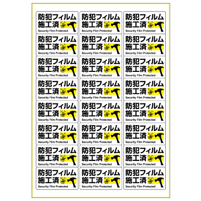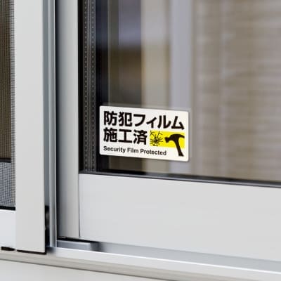 防犯フィルムを施した窓ガラスや扉まわりに貼ることで、防犯対策を行っていることを表示できるステッカーです。