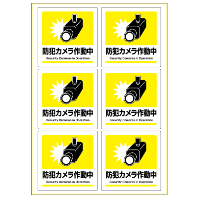 はがせる!ピタロングステッカー 防犯カメラ作動中 A4 6面