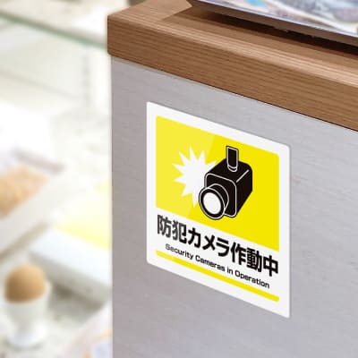 窓ガラスや扉まわりに貼ることで、防犯対策を行っていることを表示できるステッカーです。オフィスのエレベーターや店舗のレジ周りにもおすすめです。