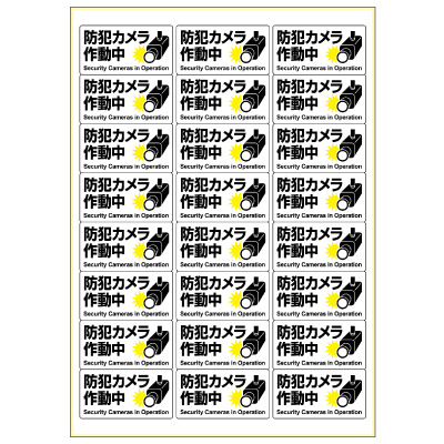 はがせる!ピタロングステッカー 防犯カメラ作動中 A4 24面