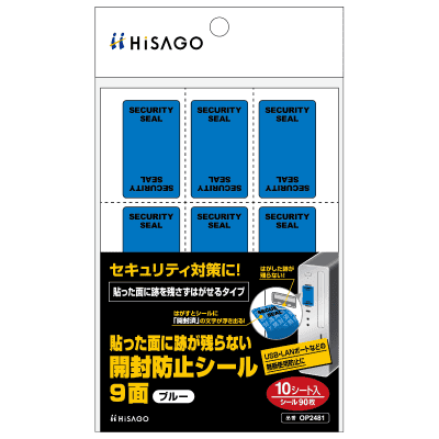 貼った面に跡が残らない開封防止シール 9面 ブルー