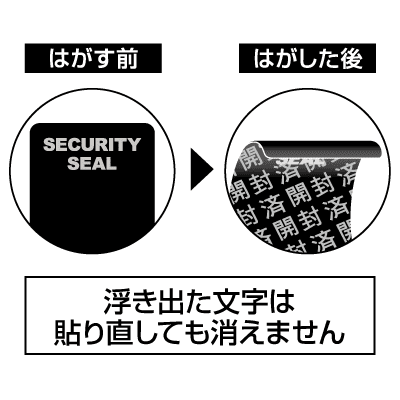 はがすとシールに「開封済」の文字が浮き出るので、開封したことが判別できます。