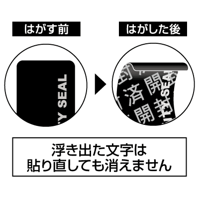 はがすとシールに「開封済」の文字が浮き出るので、開封したことが判別できます。