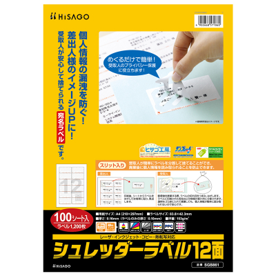 | 入数:100シート/ サイズ:A4 210×297mm (ラベルサイズ:83.8×42.3mm) | |