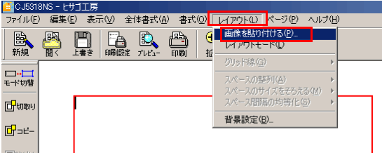 1.メニューバーの[レイアウト]-[画像を貼り付ける]をクリックします。