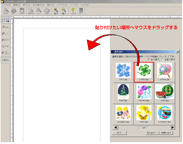 画像の挿入方法は、画像スペースにはどうやって画像を入れるの?で紹介した方法の他に、画像を選択後、好きな場所へ貼り付けるという方法があります。