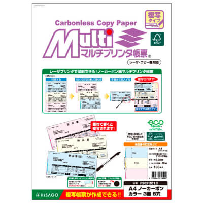 FSC®認証 マルチプリンタ帳票 複写タイプ A4 ノーカーボン カラー 3面 6穴