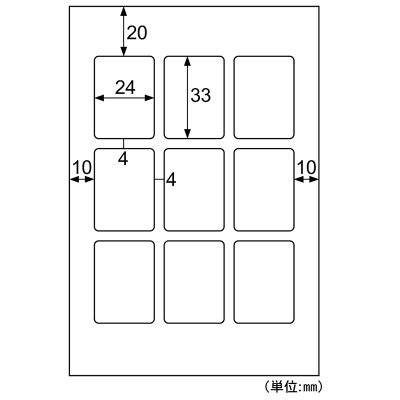 | 入数:10シート/ サイズ:ハガキ 100×148mm (ラベルサイズ:24×33mm) | |