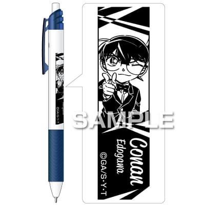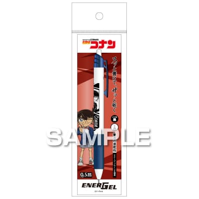 「スッと書けて、サッと乾く。」ぺんてるのゲルインキボールペンです。軸にTVアニメ 『名探偵コナン』 のイラストがデザインされています。「スッと書けて、サッと乾く。」ぺんてるのゲルインキボールペンです。軸にTVアニメ 『名探偵コナン』 のイラストがデザインされています。