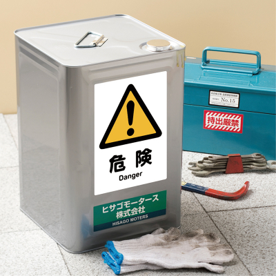 油のついたところでも、コンクリートなどザラザラしたところでも、ピタッと貼れて、長持ち!JIS規格準拠の表示マークステッカーです。