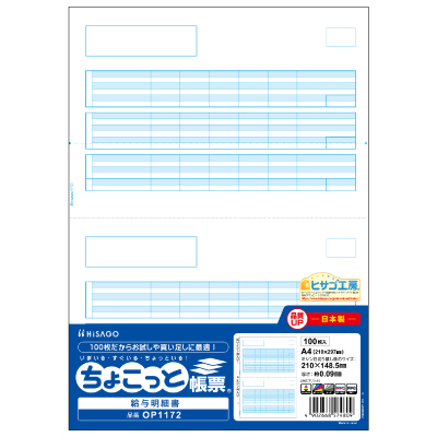 売れ筋の給与明細書「GB1172」の少量パック。