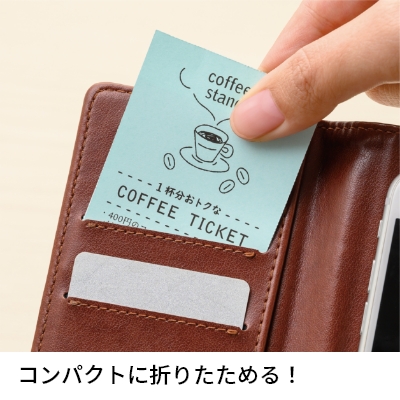 お財布などに入れやすいコンパクトなサイズに折りたたむことができます。