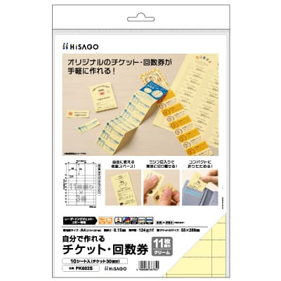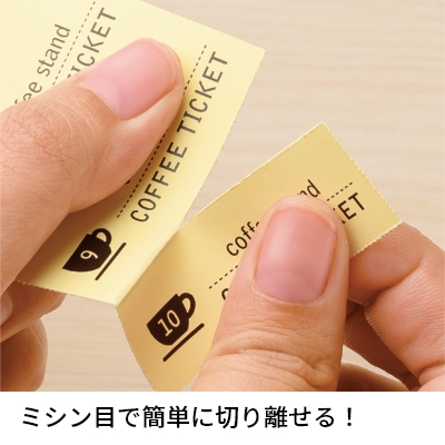 習い事のレッスンチケットやサロンの回数券などにおすすめの6枚綴りと、コーヒーチケットやクリーニング回数券などにおすすめの11枚綴りの2種を展開。