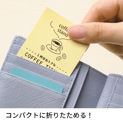 お財布などに入れやすいコンパクトなサイズに折りたたむことができます。
