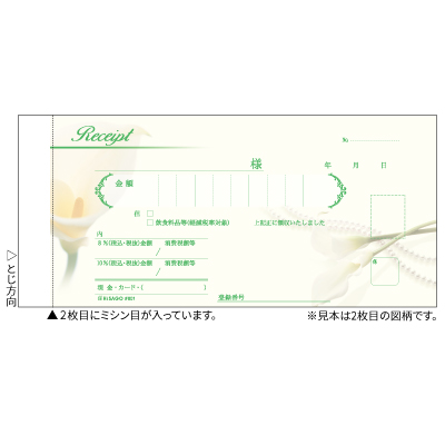 カラーの花をデザインした、華やかでエレガントな領収証です。
