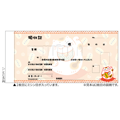 千客万来・商売繁盛を願う、招き猫と小判をデザインした領収証です。