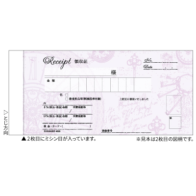アンティークで落ち着いた「時計」と「鍵」をモチーフにした領収証です。