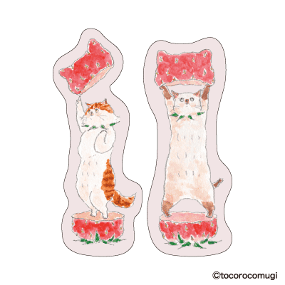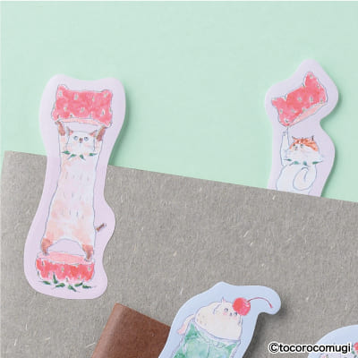 しっかり貼れるピタふせん S(ブックマークタイプ)/トコロコムギ やる気まんまんいちごにゃんこ