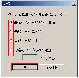 2.ページの追加位置を選択し、【OK】をクリックします。