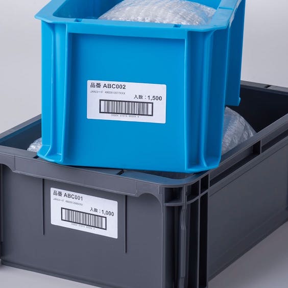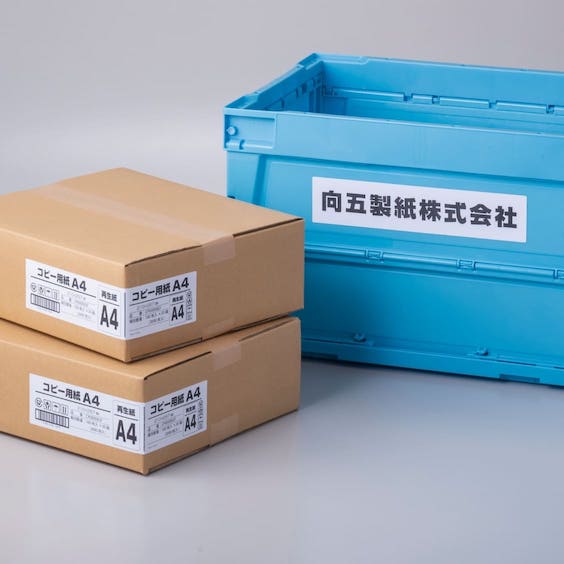 ダンボールやプラスチックにもしっかり貼れる強粘着ラベルです。はがれると困るものにおすすめです。