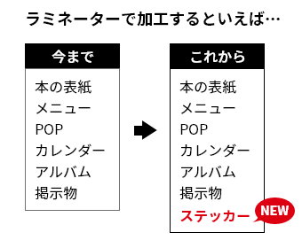 「HLA-2301」なら、従来のメニュー・POPなどの表面保護加工に加え、和紙などの特殊な素材を極小ロットでステッカーに加工できます。