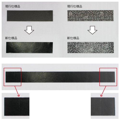 さて、日頃よりご拡販いただいております「目隠しセキュリティテープ」につきまして、このたび安定供給の観点より製造機械の変更を行うこととなりました。