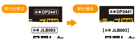 変更後は、印刷がくっきりとしてやや光沢感のある仕上がりになります。目隠しの効果に変わりはございません。また、テープ素材は現行品と同じものを使用しておりますので粘着力も変わりません。