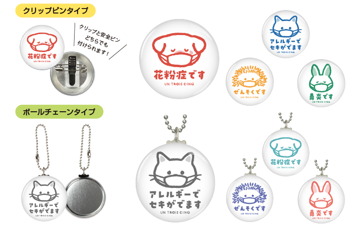 花粉症の季節にオススメ!くしゃみや咳の原因を伝える「お知らせ缶バッジ」新発売