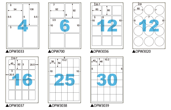 | OPW3039 | 撥水紙ラベル A4 30面 | 40×46mm |