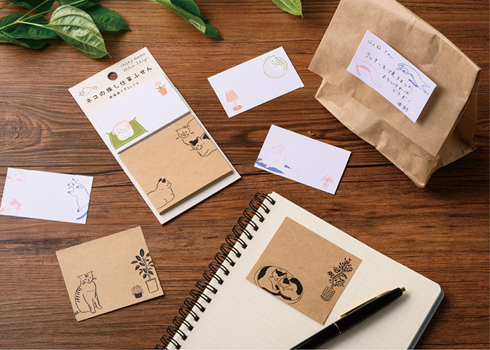 ● 上質紙とクラフト紙の異なる素材のふせんを組み合わせたセットです。それぞれのふせんに、テーマに沿った2種のイラストが描かれているため、推し仕草をたっぷりと堪能できます。