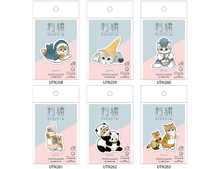 - ● 「mofusand」シリーズの刺繍ワッペンシールに、人気の「サメにゃん」をはじめ、新たに「パンダにゃん」「パティシエにゃん」などが加わった全6アイテム。