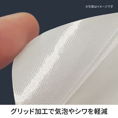 ステッカーのシール面に施されたグリッド(格子状の凸凹)加工により、剥離紙からステッカーがはがしやすく、壁や窓に貼る際の空気抜けも良いため、気泡やシワを軽減します。