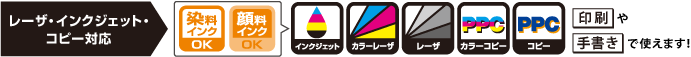 ※ レーザプリンタ・コピー機によっては(特に「厚紙」設定がない機種では)、トナーが定着しにくい場合があります。