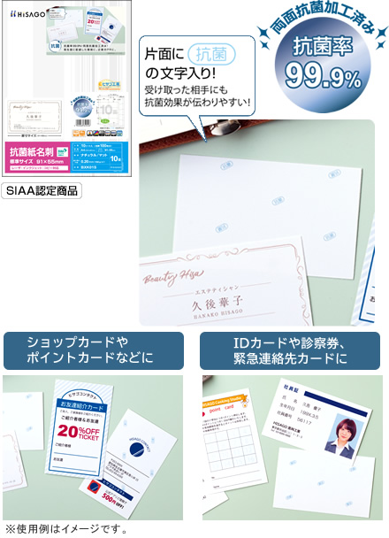 用紙の片面に「抗菌」の文字が印刷されているので、受け取った相手にも抗菌効果が伝わり、企業や自身のイメージアップにつながります。