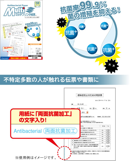 上質紙の両面に抗菌加工を施したマルチプリンタ帳票。