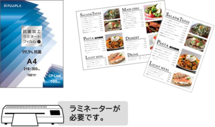 不特定多数のお客様が触れるメニュー表やPOPに。