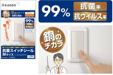 多数の人が触れるスイッチに貼って、オフィスや家庭などでの菌・ウイルス対策に!