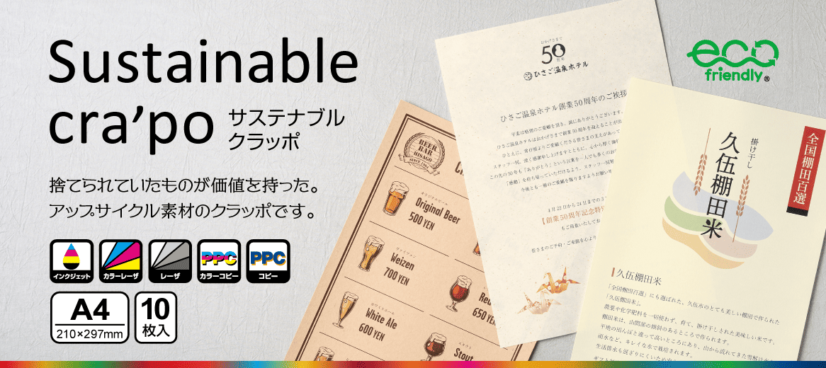 ヒサゴの「クラッポシリーズ」にアップサイクル素材を使用した用紙が仲間入り!
