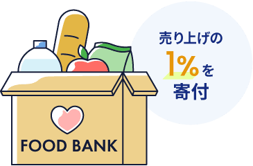 売り上げの1%をフードバンクに寄付することで、少しでも食品ロスを有効活用できるようにフードバンクを応援しています。