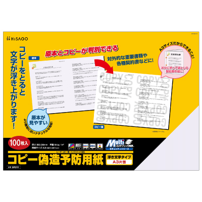 コピー偽造予防用紙【浮き文字タイプ】マルチプリンタ帳票