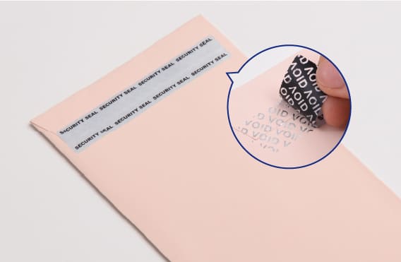 - ラベルをはがすと「VOID」の文字が現れるので開封したことが判別できる!