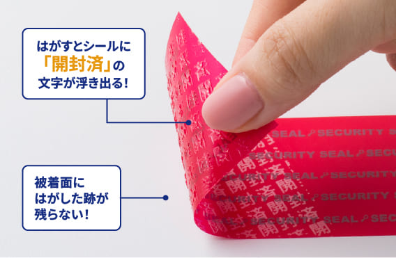 - はがすとシールに「開封済」の文字が浮き出るので、開封したことが判別できる!