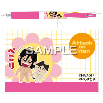 「進撃の巨人×いらすとや」のキャラが軸にデザインされたサラサボールペンです。さらさらの書きごこち!