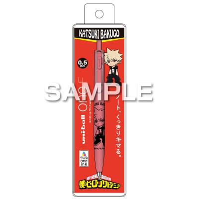 TVアニメ「僕のヒーローアカデミア」のユニボールワンFボールペンです。くっきり濃い文字が書けるゲルインクと低重心で安定した書き味が特長です。