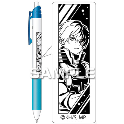 「スッと書けて、サッと乾く。」ぺんてるのゲルインキボールペンです。軸にTVアニメ 『僕のヒーローアカデミア』 のキャラクターがデザインされています。