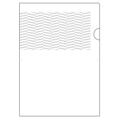 目の錯覚を利用した特殊な透かし模様の「トリック!パターン」により、挟んだ書類の文字が分断されたように見え、のぞき見対策になります。「トリック!パターン」の範囲は書類のタイトルや内容の一部が確認でき、完全に隠さないので持ち主には内容がわかります。