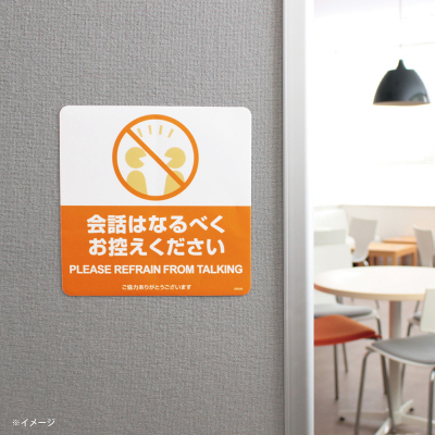布地に貼れる案内表示シール 会話はなるべくお控えください