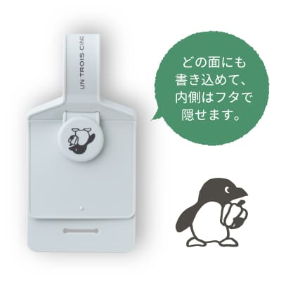 買い物リストなどをボールペンで書いて消しゴムで消せる、くり返し何度も使えるサステナブルなシリコーン製のメモ機能付き。