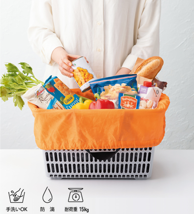 内ポケットにはスマホや鍵を入れることができ、エコバッグ1つでお買い物に行けます。 |